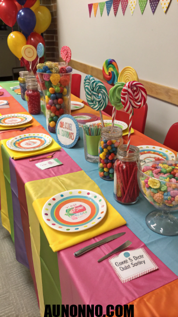 Bring a playful and colorful vibe to your New Year’s celebration with a whimsical Candyland theme. Start with a bright, multicolored tablecloth and layer it with candy-themed decorations. Use vibrant plates and cutlery, and consider using candy jars filled with assorted sweets as centerpieces.
