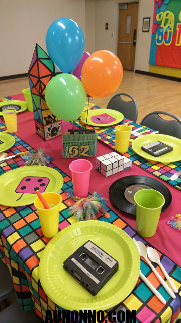 Add playful elements like Rubik’s cubes or 80s-themed party favors at each place setting. Encourage guests to dress in their best 80s attire for a night of nostalgia and fun. This theme is perfect for those who want to relive the vibrant spirit of the 1980s.