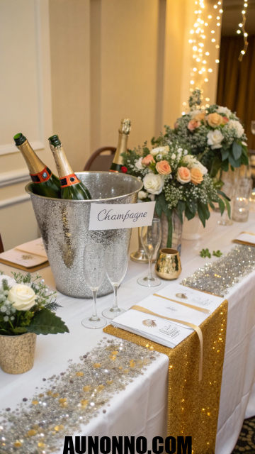 Add touches of gold and silver with decorative elements like sequined table runners or glittery place cards. Consider using mini champagne bottles as party favors at each place setting, complete with personalized labels. This theme is perfect for toasting to the New Year in style.