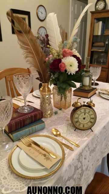 For centerpieces, use vintage vases filled with seasonal flowers or feathers. Add decorative elements like old-fashioned clocks or vintage books to enhance the theme. This style creates a romantic and sophisticated atmosphere, perfect for a New Year’s Eve celebration.