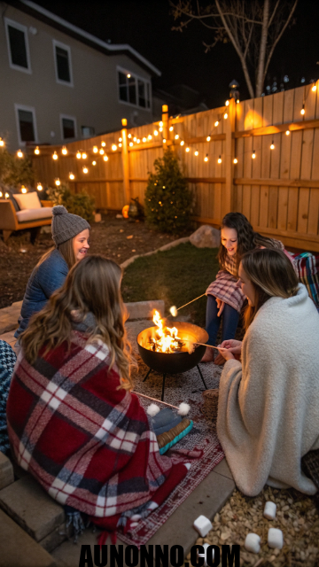 Serve warm drinks like hot chocolate or spiced cider. Add marshmallows for roasting to keep the nostalgia alive. Music from a portable speaker sets an easy rhythm.