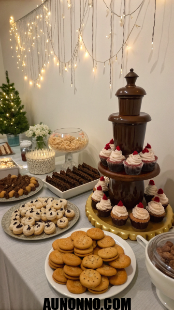 Turn sweetness into the center of celebration. Fill a table with homemade cookies, cupcakes, brownies, and candy jars. Add a chocolate fountain for visual appeal.