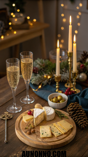 Soft jazz or piano music complements the relaxed vibe. Candlelight and wooden trays bring warmth and class. The scent of good wine and cheese feels comforting.