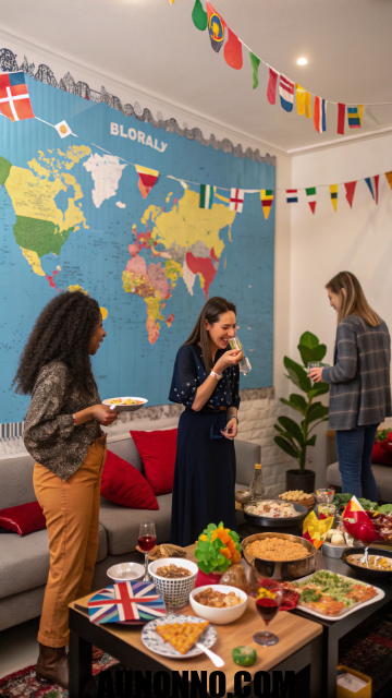 Celebrate global traditions in one night. Dedicate different corners of your home to various countries. Use small flags, themed snacks, and international music.