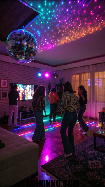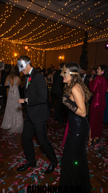 Turn your home into a mysterious ballroom. Guests wear masks, glitter, and elegant outfits ready for photos and laughter. Soft lighting and jazz or pop music complete the mood.