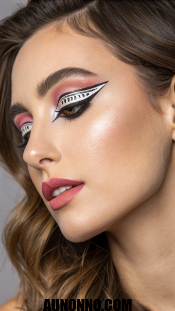 Use a liquid eyeliner or felt-tip pen to create your graphic design with confidence and precision. Consider floating lines above or below your lash line, geometric shapes on your lids, or modern wing variations that push traditional cat-eye boundaries. The graphic element becomes your makeup focal point, so keep your eyeshadow neutral and your lips understated.
