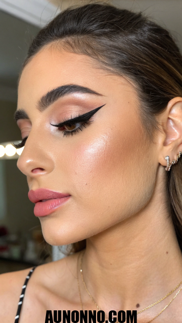 Sometimes the most impactful new year’s eve makeup look comes from perfect execution of the basics. A sharp winged eyeliner paired with glossy lips represents minimalism at its finest while delivering serious polish. This combination works for bold outfits and ensures your makeup remains understated yet completely impactful.