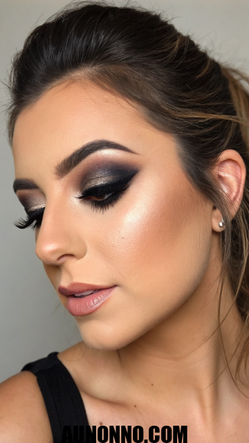 A classic black smokey eye remains timeless and impactful for new year’s eve makeup that never goes out of style. Deep black and charcoal shades create drama and intensity while remaining universally wearable across all skin tones. This sophisticated look works for both casual and formal celebration venues.