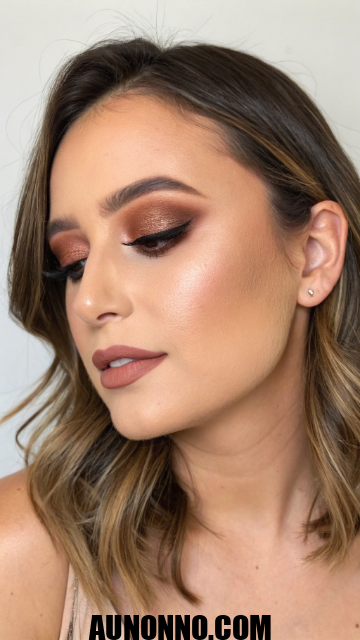 Apply a light layer of bronzer to your cheekbones and jawline to enhance the mocha theme throughout your face. Use a cream highlighter in a champagne shade on your brow bones to lift and open your eye area. This makeup look feels expensive and refined, making you feel like the best version of yourself as you celebrate.