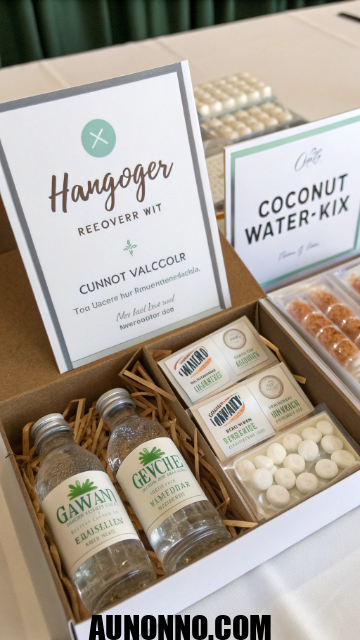 End the night with humor by giving guests hangover recovery kits as they leave. Include items like hangover supplements, electrolyte drinks, pain relievers, and a funny thank-you card. This practical favor reminds guests of the fun they had celebrating with you.