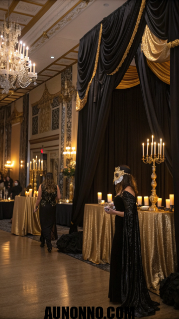 Distribute masks at the entrance or include them with place settings. Create a photo moment with a backdrop designed for masked guests. Decorate with dramatic colors like deep purple, black, and gold. Candelabras and dramatic lighting enhance the masquerade atmosphere. This theme allows guests to feel like they’re part of an exclusive, secret celebration.