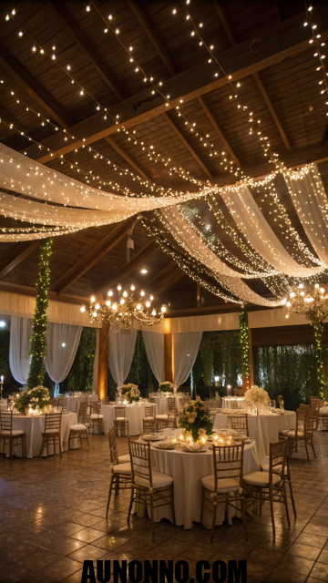 Fairy lights create a magical, romantic atmosphere that works perfectly for New Year’s Eve weddings. Drape lights across ceilings, around doorways, and throughout the reception space. The soft glow creates warmth and intimacy despite the festive celebration.