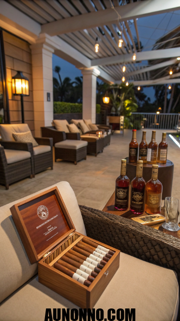 Provide a comfortable seating area with lounge chairs and side tables. Offer various cigar options to suit different preferences. Pair cigars with premium spirits like brandy or aged whiskey. Consider personalized bands on cigars with your wedding date. Ensure proper ventilation and check local regulations about indoor cigar smoking.