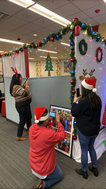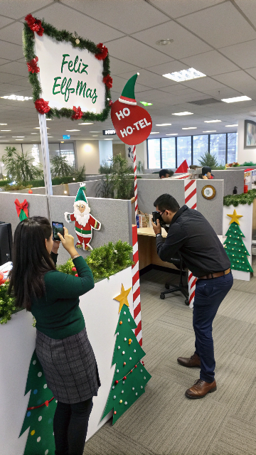 Create a holiday photo wall where employees can take pictures with festive backdrops and props. This can serve as a fun and interactive way to capture holiday memories. Encourage teams to get creative with their poses and props, and consider having a contest for the best holiday-themed photo.