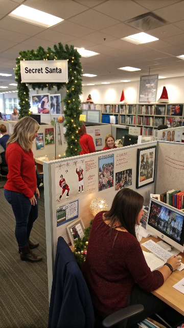 Incorporate the spirit of Secret Santa into your decorating contest. Each team can draw names and decorate their designated area based on the interests or favorite things of the person they picked. This adds a personal touch and encourages employees to learn more about their colleagues.