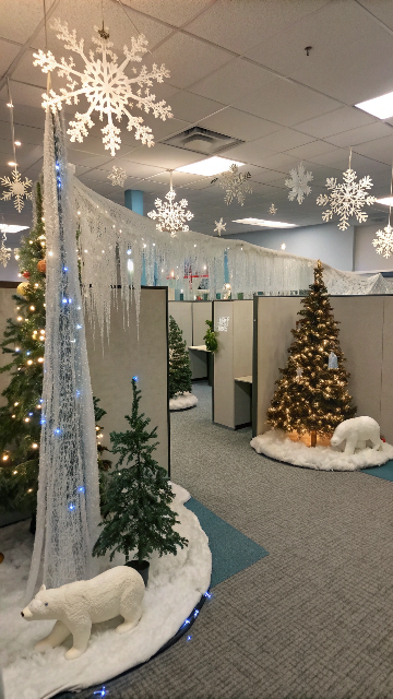 Transform a section of the office into a winter wonderland. Teams can use white decorations, fake snow, and icicles to create a magical atmosphere. This theme can evoke the beauty of winter and provide a serene escape from the usual office environment.