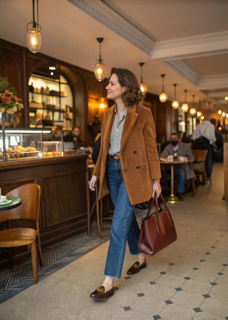 A corduroy blazer paired with jeans is a casual yet refined old money outfit. The textured fabric of the blazer adds depth, while the jeans provide a relaxed fit. This combination is perfect for weekend outings or casual gatherings.
