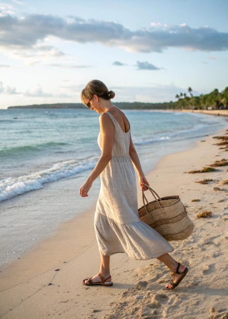 A linen shift dress is a lightweight and elegant old money outfit. The breathable fabric makes it perfect for summer, while the simple design adds sophistication. This dress is ideal for casual outings or beachside lunches.