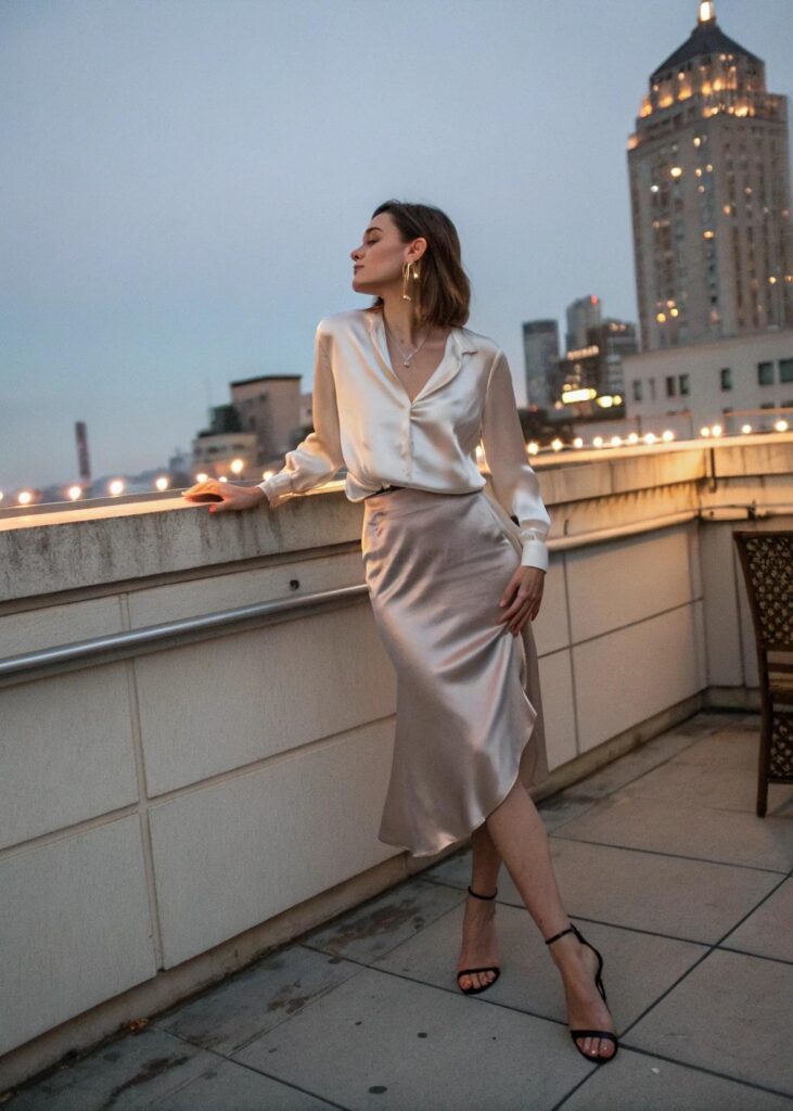 A satin slip skirt paired with a blouse is a luxurious old money outfit. The smooth fabric of the skirt adds elegance, while the blouse provides structure. This combination is perfect for evening events or romantic dinners.