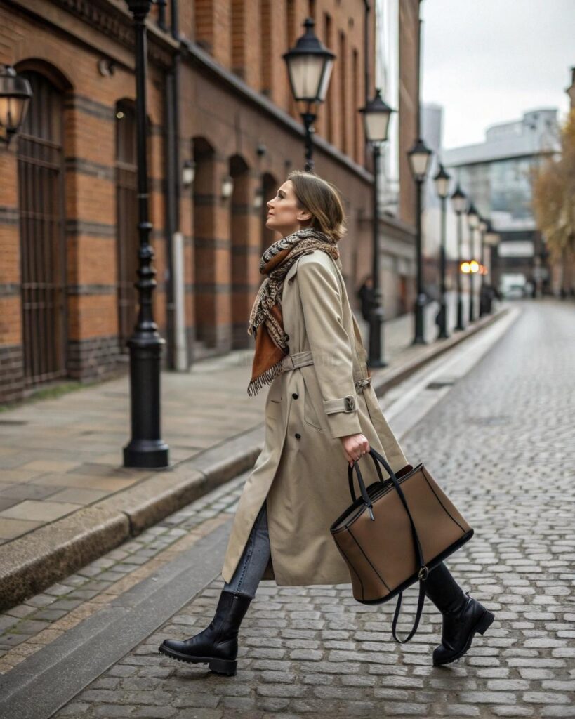 A structured leather handbag paired with a trench coat is a quintessential old money outfit. The trench coat adds a layer of sophistication, while the handbag provides functionality. This combination is perfect for rainy days or city strolls.