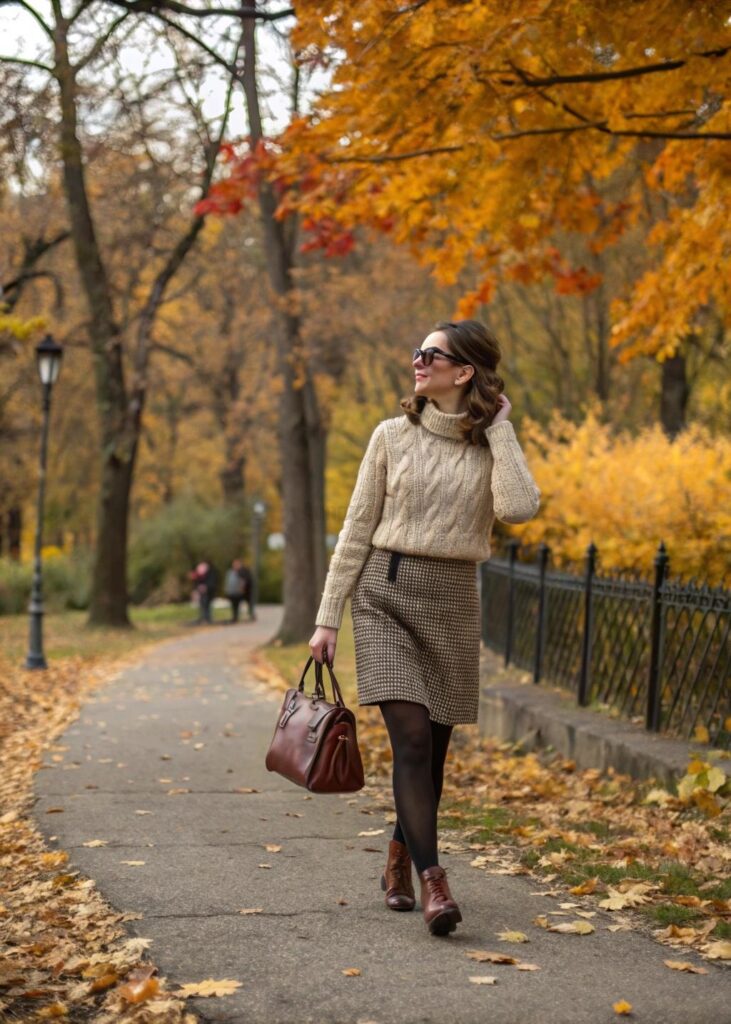 Pair it with knee-high boots and a leather clutch for a polished finish. Add a wool coat for extra warmth. This outfit is both stylish and practical.