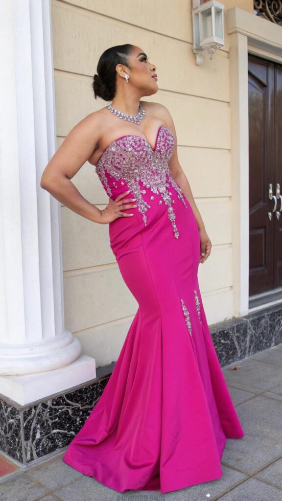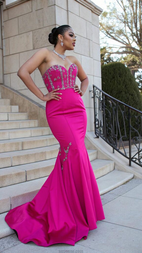 Pair this gown with statement earrings and a sleek updo for a glamorous look. The vibrant color pairs well with silver or diamond accessories. It’s a dress that will make you feel like the star of the show.