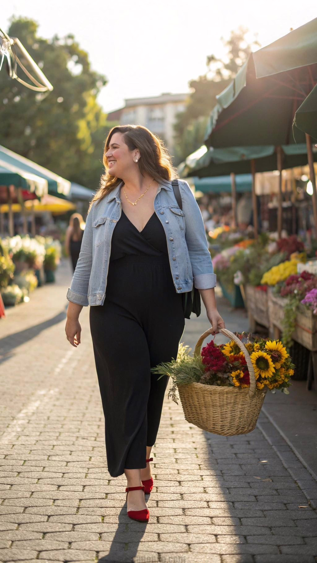 A well-fitting jumpsuit is a game-changer for easy dressing. Throw on a denim jacket for an extra layer of style and warmth. The vertical lines of the jumpsuit create a lengthening effect.
