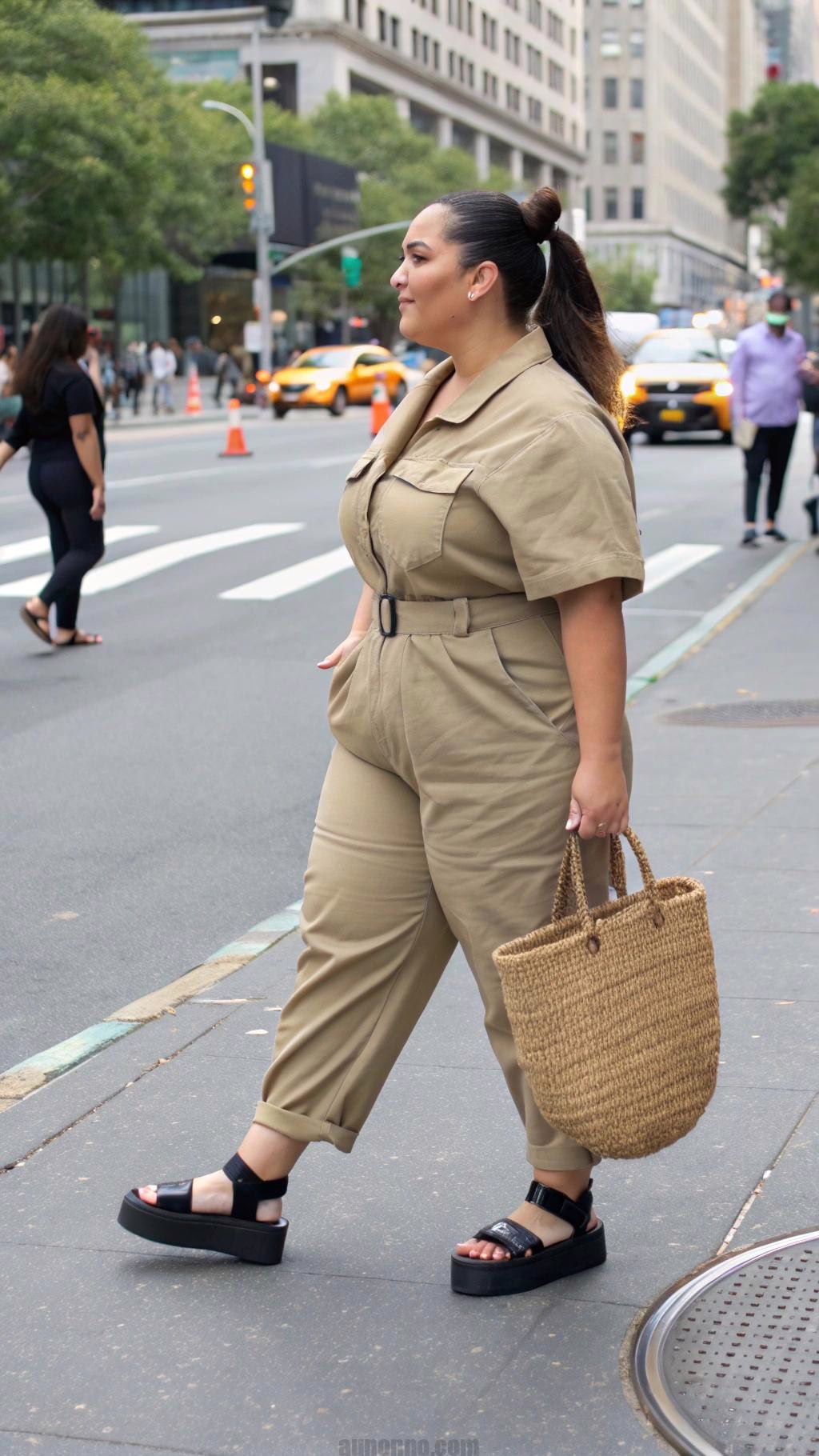 A utility jumpsuit is a one-and-done wonder for effortless style. The structured pockets and belted waist create shape while keeping it relaxed. Slide sandals keep the vibe easy and comfortable.