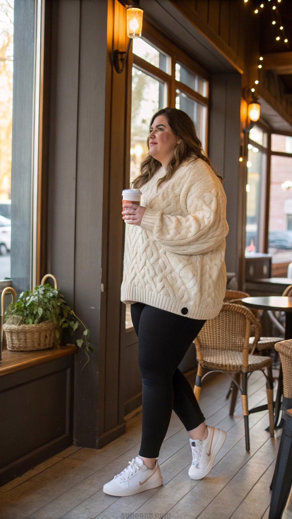 An oversized sweater paired with leggings is a go-to for comfort and style. The loose fit keeps you cozy while the leggings provide a sleek silhouette. This combo works for any casual occasion, from coffee dates to grocery runs.