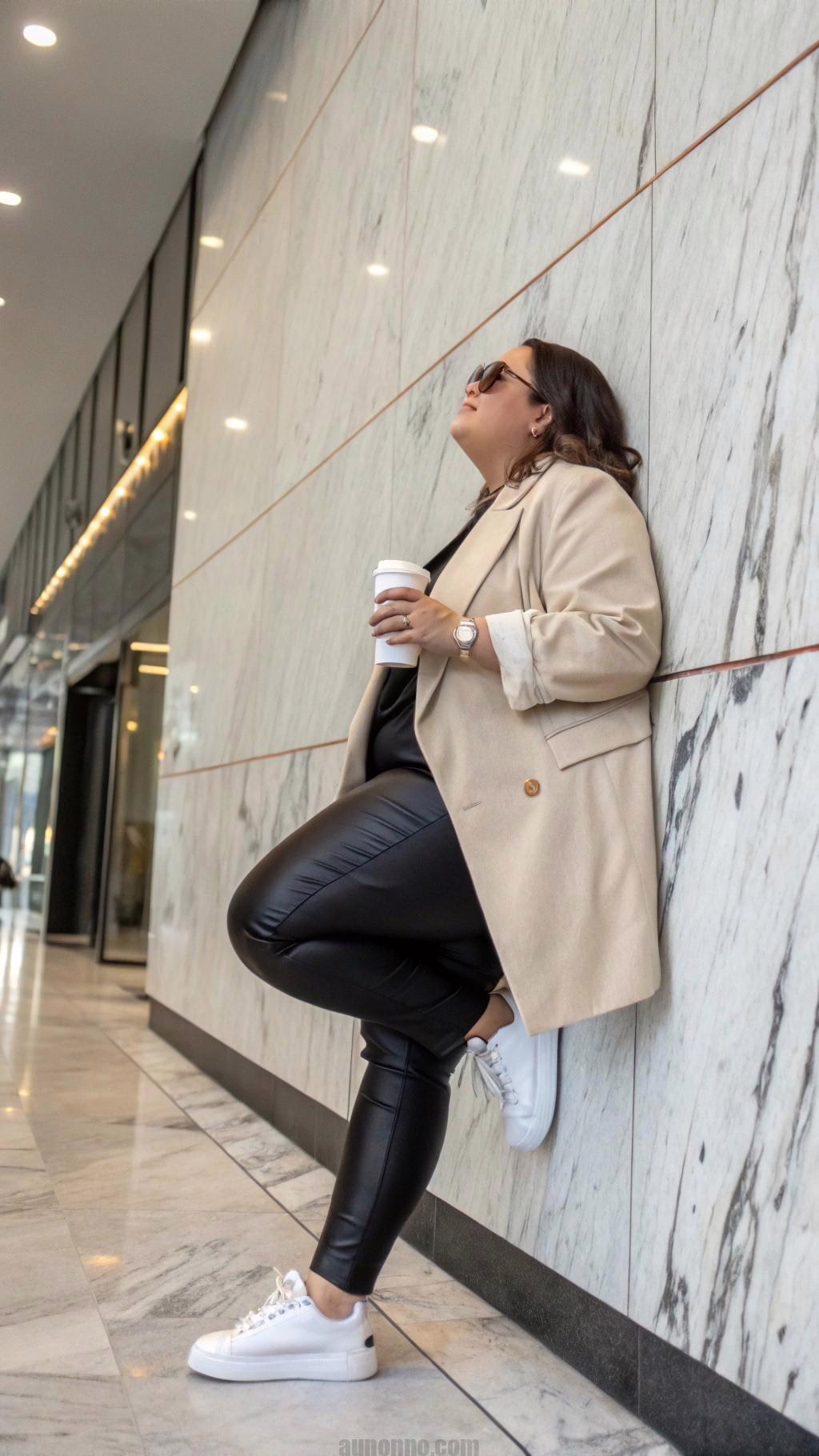 Faux leather leggings add instant edge to any casual outfit. Pair them with an oversized blazer for a chic contrast of textures. Sneakers keep it casual while still looking put-together.