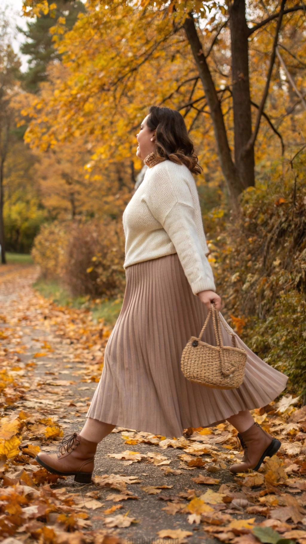 Pair a pleated skirt with a ribbed knit sweater for texture contrast. Tuck the sweater in slightly to highlight your waist. Add delicate jewelry for a feminine touch.