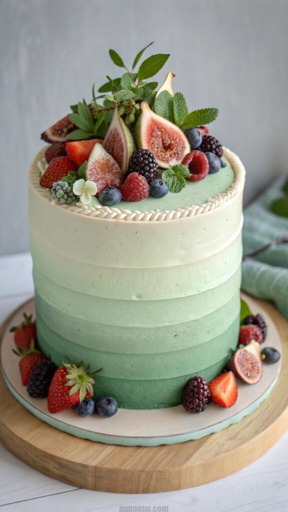 An ombre cake is a stunning way to showcase the beauty of sage green. Start with a light green base and gradually transition to a darker shade at the top. This gradient effect can be achieved with buttercream or fondant. To enhance the design, consider adding edible flowers or fresh fruit on top, such as figs or berries, for a pop of color and texture.