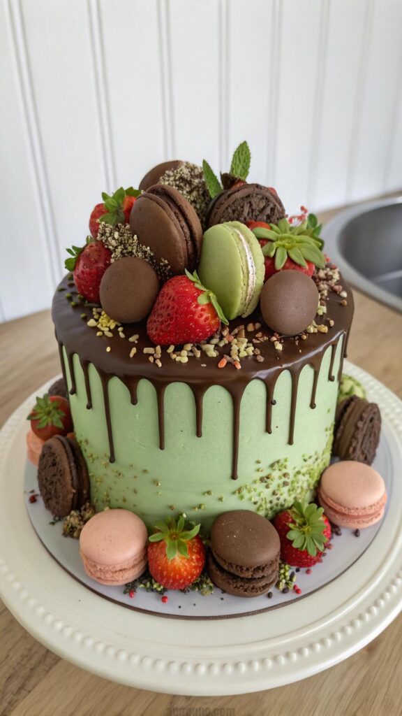 Drip cakes are all the rage, and a sage green version is sure to impress your guests. Use a rich chocolate ganache or a colored glaze that complements the sage green base. Decorate the top with an assortment of treats, such as macarons, chocolate-covered strawberries, and sprinkles. This cake is not only visually appealing but also deliciously indulgent.