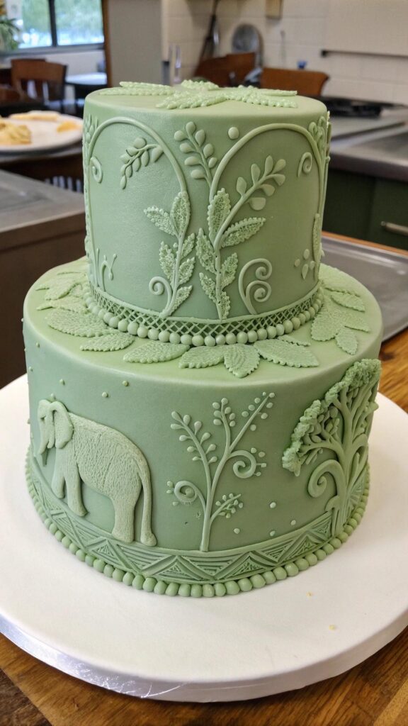 Fondant cakes offer a sleek and polished look, making them ideal for intricate designs. A sage green fondant cake can be shaped into various forms, such as a tiered cake or a sculpted design. You can add details like lace patterns, bows, or even themed decorations to match the birthday celebration.