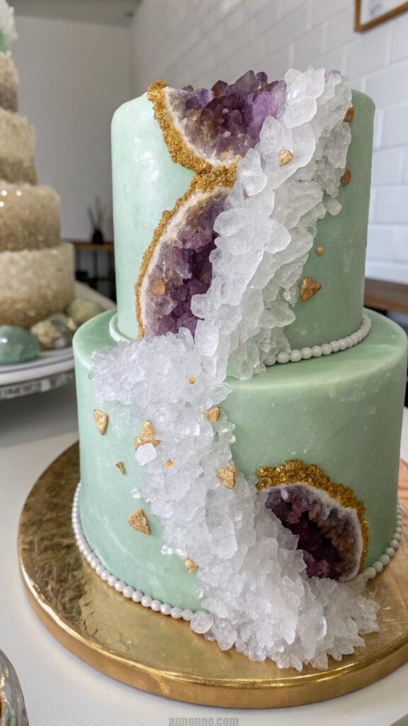 For a unique and eye-catching design, consider a sage green geode cake. This cake features a stunning crystal-like effect created with rock candy or isomalt. The sage green base can be complemented with shades of white, gold, or even purple to mimic the look of real geodes. This cake is perfect for those who love a bit of sparkle and glamour.