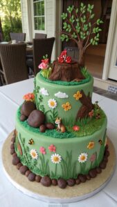 A rustic cake can add a charming touch to your birthday celebration. A sage green rustic cake can be achieved by using a textured buttercream finish that mimics the look of bark or wood. Decorate with natural elements like twigs, leaves, or fresh flowers for a woodland-inspired design. This cake is perfect for nature lovers and outdoor gatherings.