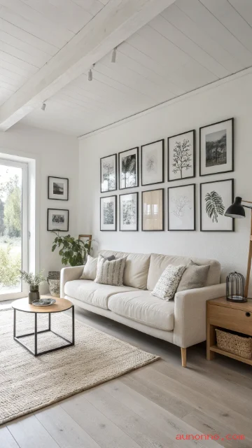 Scandinavian wall art feels calm and uncluttered. Choose minimal prints, line art, or soft landscape photos. Give each piece breathing room on the wall.