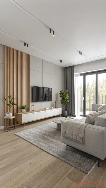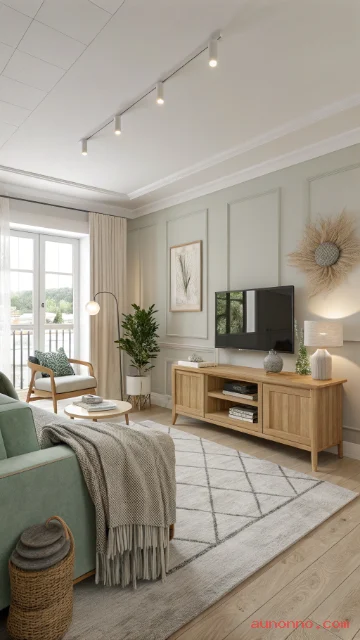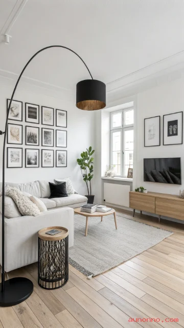 Try a floor lamp, a table lamp, and a pendant. Soft light makes the room feel comfortable at night. Keep lamp shapes simple and modern.