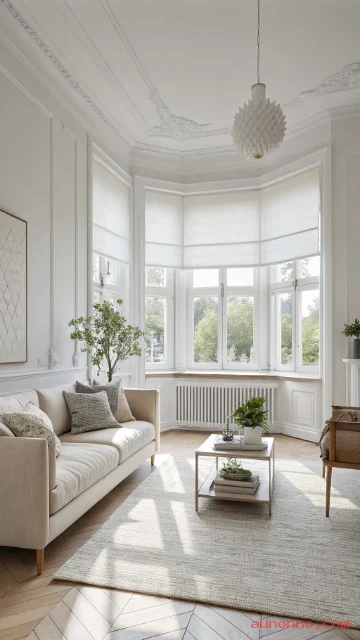 Some Scandinavian rooms skip heavy curtains. Simple roller shades or bare windows can look clean and modern. This works best if privacy is not a big issue.