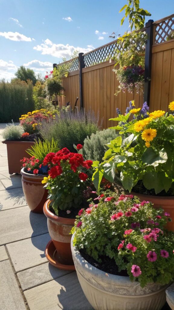 Arrange pots in clusters for a lush look. Potted plants allow you to change your garden’s layout easily. They’re perfect for small or rented spaces.