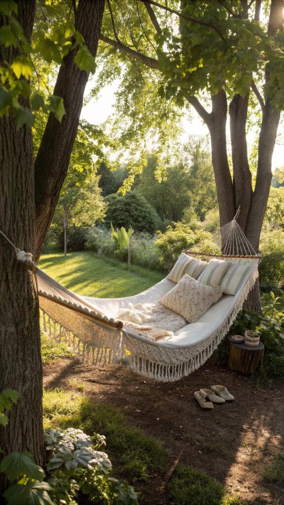 Add cushions and a blanket for extra comfort. A hammock or swing is perfect for lazy afternoons. It’s a simple way to make your garden feel like a retreat.
