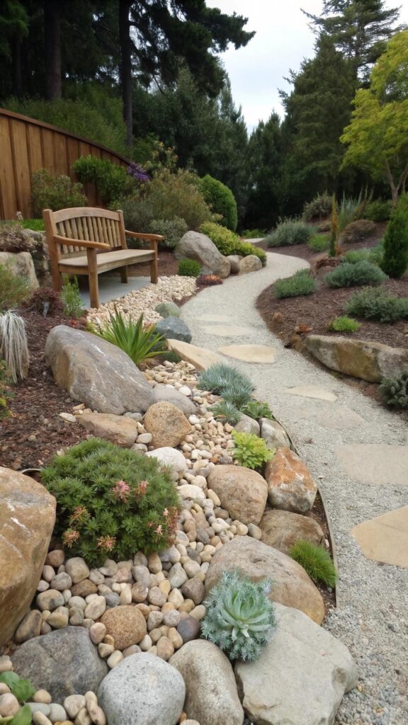 Add a small bench or pathway for access. A rock garden is low-maintenance and visually striking. It’s a great way to add variety to your garden.