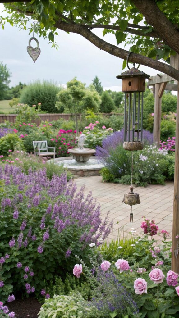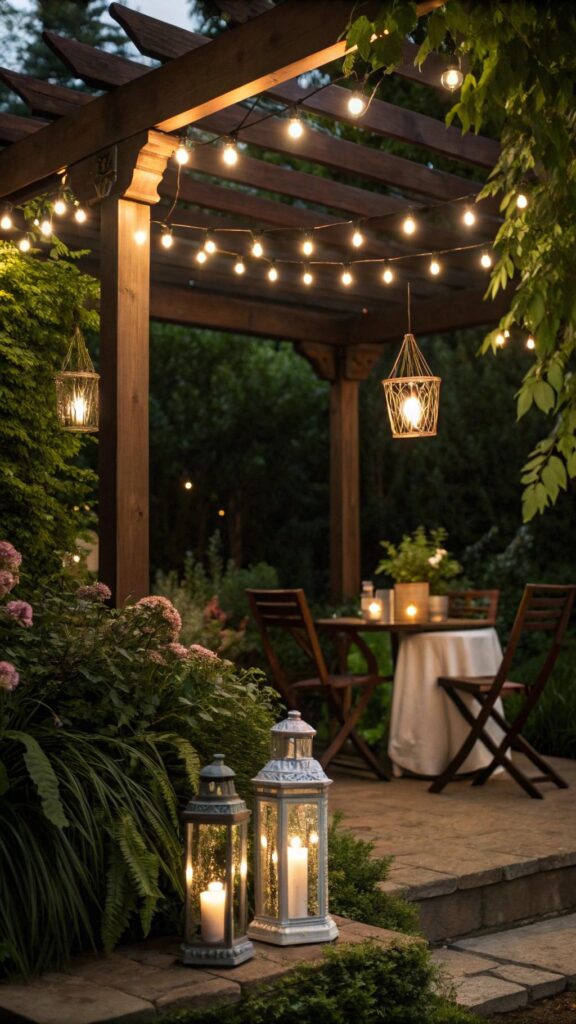 Add lanterns or candles for extra charm. String lights make your garden usable at night. They create a romantic and inviting space.