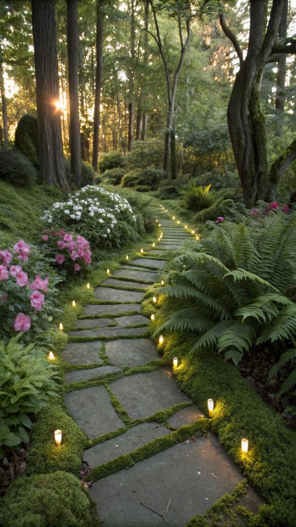 Use materials like gravel, stepping stones, or moss. Surround the path with plants to enhance the secluded feel.