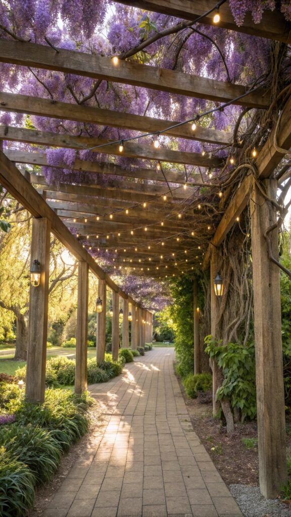 Pergolas and arbors add structure and height to your secret garden. They create a natural frame for climbing plants like wisteria, roses, or grapevines. Place them over pathways or seating areas to define the space.