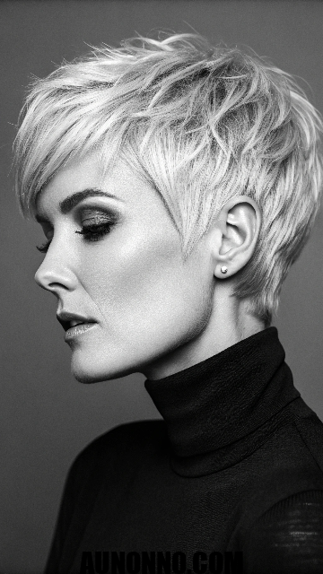 Go for a sophisticated and modern look with silver hair. This chic, grey color is stunning on a textured pixie cut. It looks amazing on both naturally grey hair and dyed shades. The silver tone highlights every nuanced layer and piece. This style is elegant, edgy, and incredibly fashionable. It is a powerful statement of confidence.
