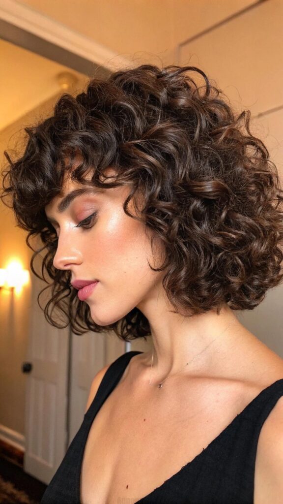 12. Curly Bob with Side Swept Bangs