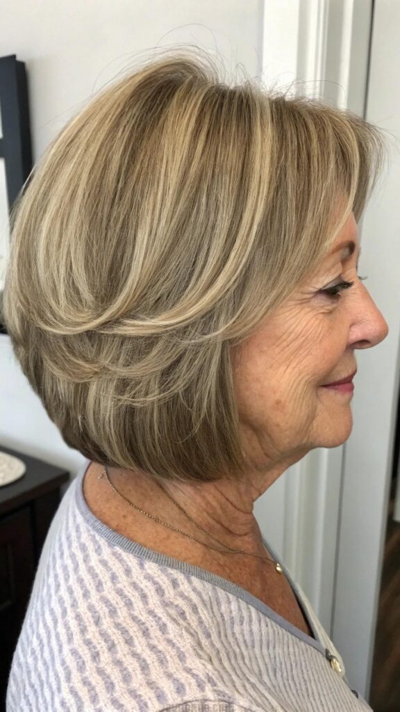 A layered bob is a versatile and flattering hairstyle for women over 70. The layers add movement and volume, making it ideal for thinning hair. This style can be worn straight or with soft waves.