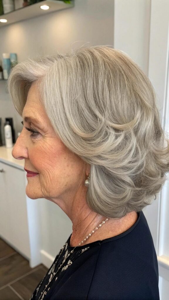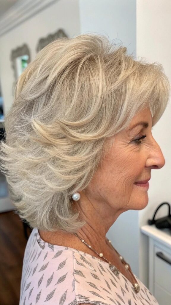Feathered layers are a soft and feminine hairstyle for women over 70. They add movement and texture to short hair, creating a light and airy look. This style is perfect for those who want a delicate and elegant vibe.