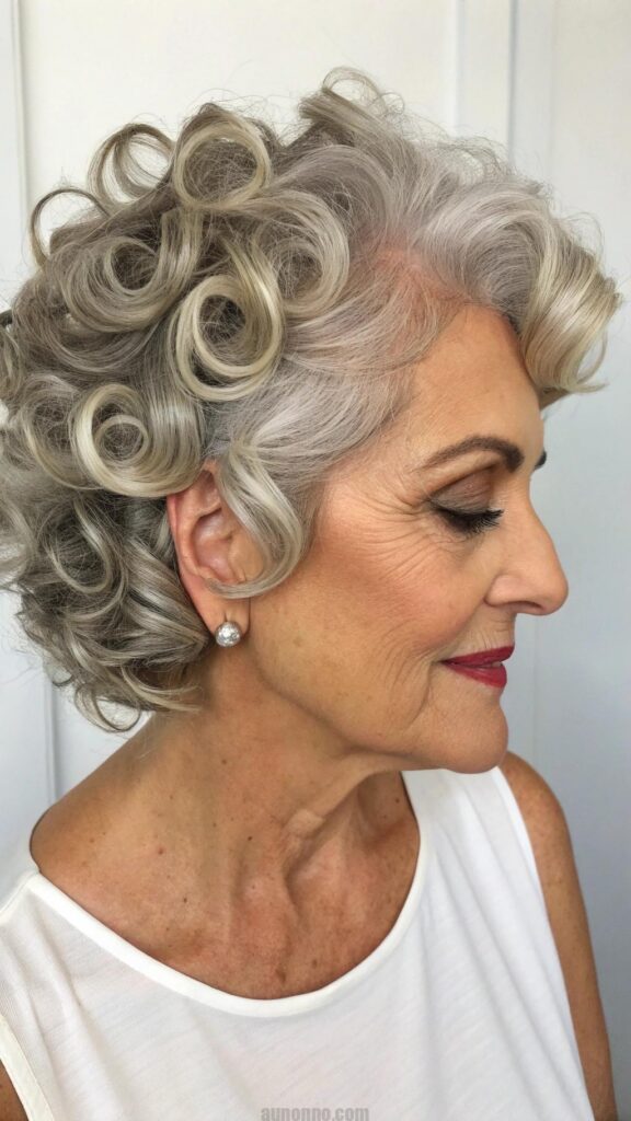 Soft curls are a great way to add volume and texture to short hair. This hairstyle is feminine and flattering for women over 70. It’s perfect for those who want a playful yet elegant look.